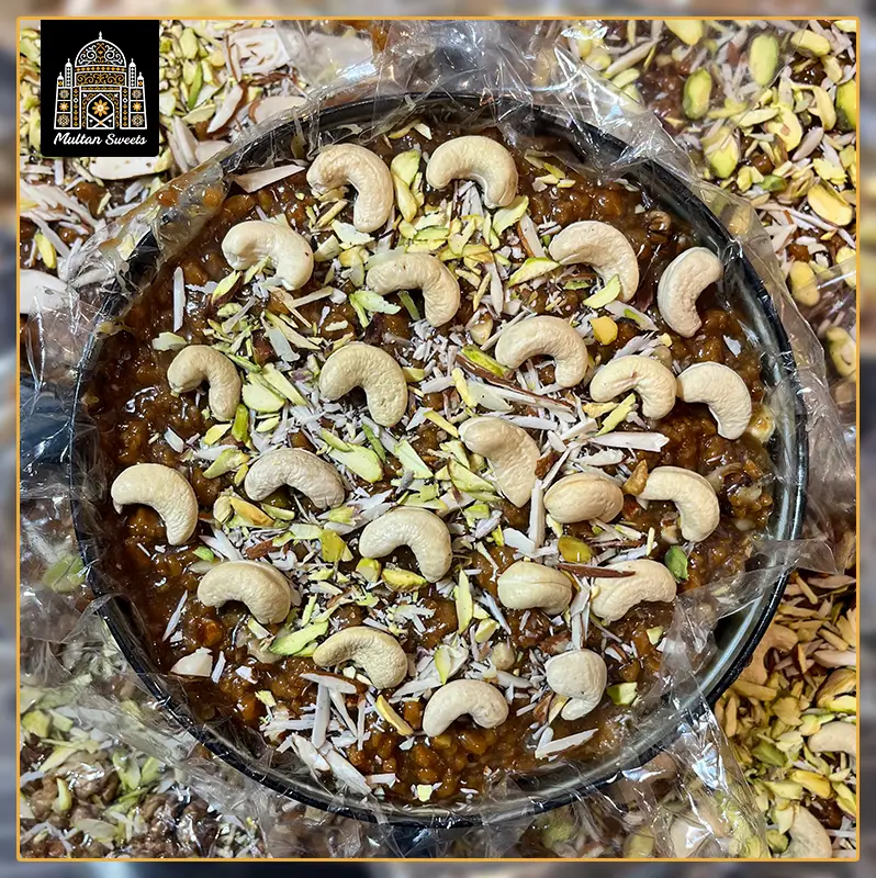 Simply, imagine the rich, caramelized taste of Sohan Halwa. Then, add the buttery crunch of cashews. Together, they create a luxurious flavor. Specifically, cashews add a creamy texture that melts in your mouth. Moreover, the desi ghee makes it even better.